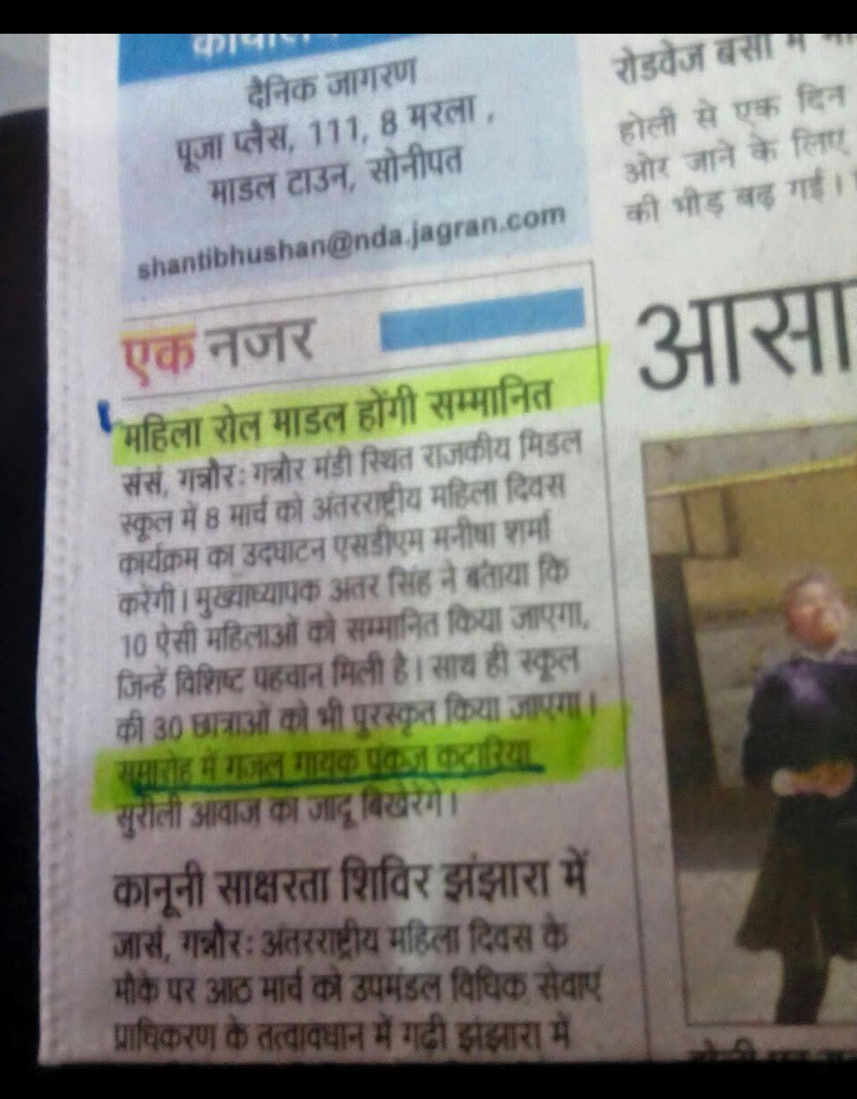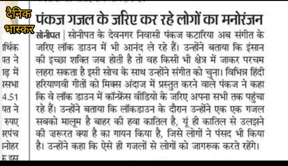 Singer Pankaj Kataria get featured in India’s Leading Newspaper Dainik Jagran. He shared his life journey as a Singer with Dainik Jagran Team.